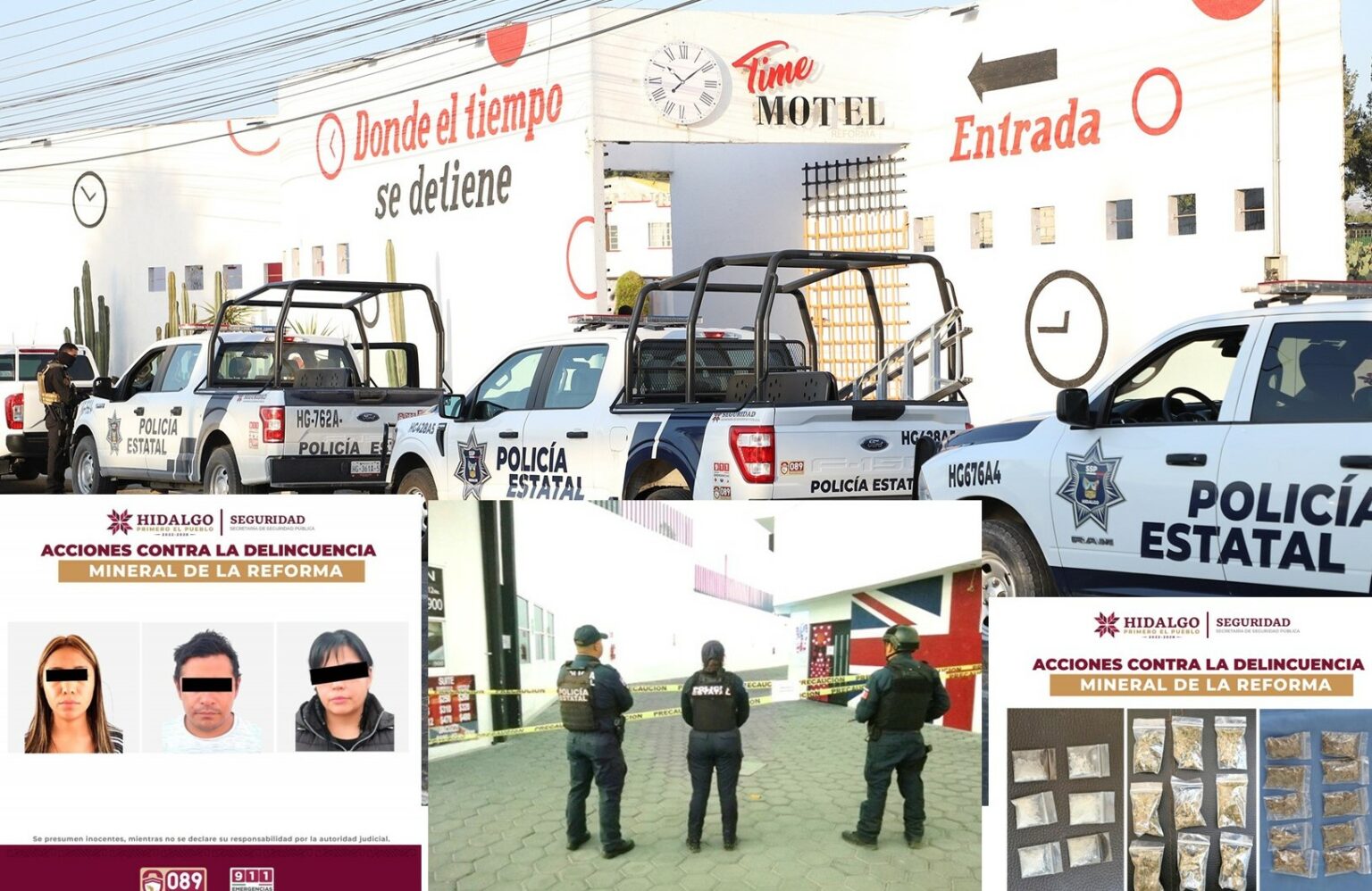 MINERAL DE LA REFORMa, Hgo. – Agentes de la Secretaría de Seguridad Pública de Hidalgo (SSPH) detuvieron a dos mujeres y un hombre durante un operativo simultáneo efectuado en tres hoteles del municipio de Mineral de la Reforma, como parte de las acciones de la dependencia para combatir de manera frontal a la delincuencia.