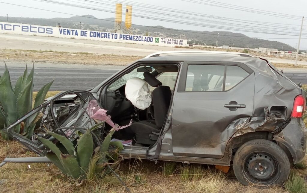 ZEMPOALA, Hgo. – Dos empleados de una financiera resultaron con lesiones menores, la tarde de hoy, al volcar su pequeño automóvil en la autopista Pachuca-Ciudad Sahagún, a la altura de Zempoala.