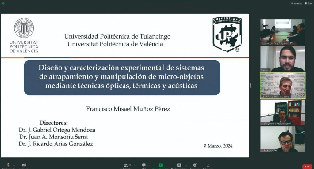 El sustentante, egresado de la UPT de la Maestría en Computación Óptica, presentó el examen de grado de manera virtual, debido a que actualmente se encuentra en la institución española culminando su formación de posgrado.