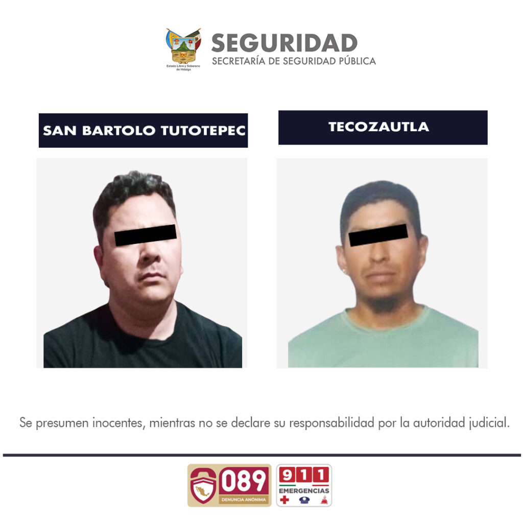 En seguimiento a labores preventivas, la Secretaría de Seguridad Pública de Hidalgo (SSPH) realizó la detención de dos personas por la portación ilegal de armas en los municipios de San Bartolo Tutotepec y Tecozautla.