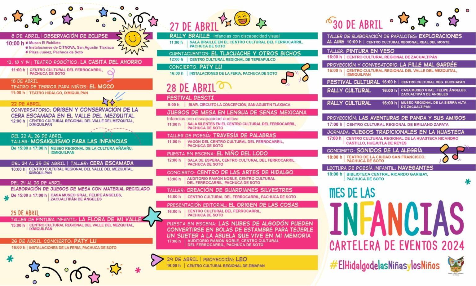 A la estrategia estatal El Hidalgo de las Niñas y los Niños, se suma la Secretaría de Cultura, mediante una amplia oferta en todas las regiones de la entidad, que llevará risas, aprendizaje y momentos inolvidables para los más pequeños.