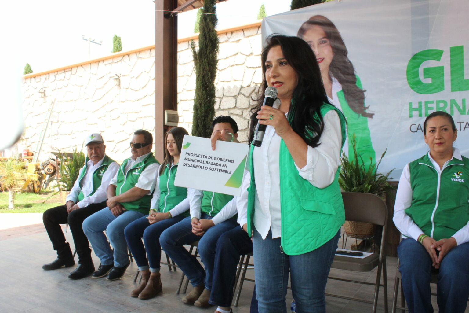 APAN, Hgo. – María Gloria Hernández Madrid, el lunes, con una rueda de prensa dio inició a su campaña proselitista como candidata del Partido Verde Ecologista a la presidencia municipal de la capital mundial del pulque.