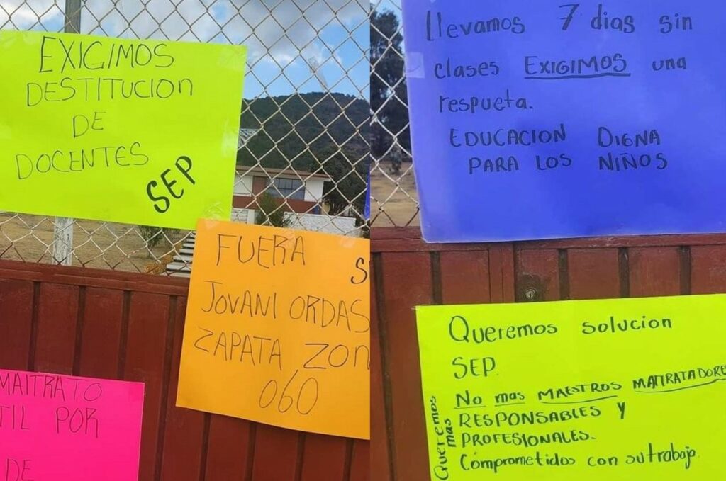 Refieren que piden la destitución de los profesores Amairany Anguiano, Karina García por agredir a los infantes, pero además la del supervisor Giovanni Ordaz que es una persona incompetente para el cargo, le expusieron el problema y los ha ignorado.
