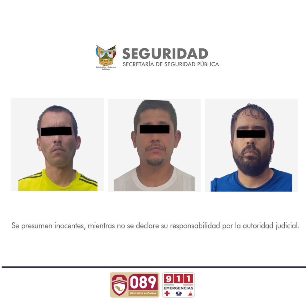 Resalta además que los tres sujetos de iniciales E. L. G., M. C. C. y J. A. R. V, podrían estar relacionados con más robos cometidos en agravio de casas de empeño y diferentes comercios en los estados de Hidalgo, Puebla, Edomex y Veracruz.