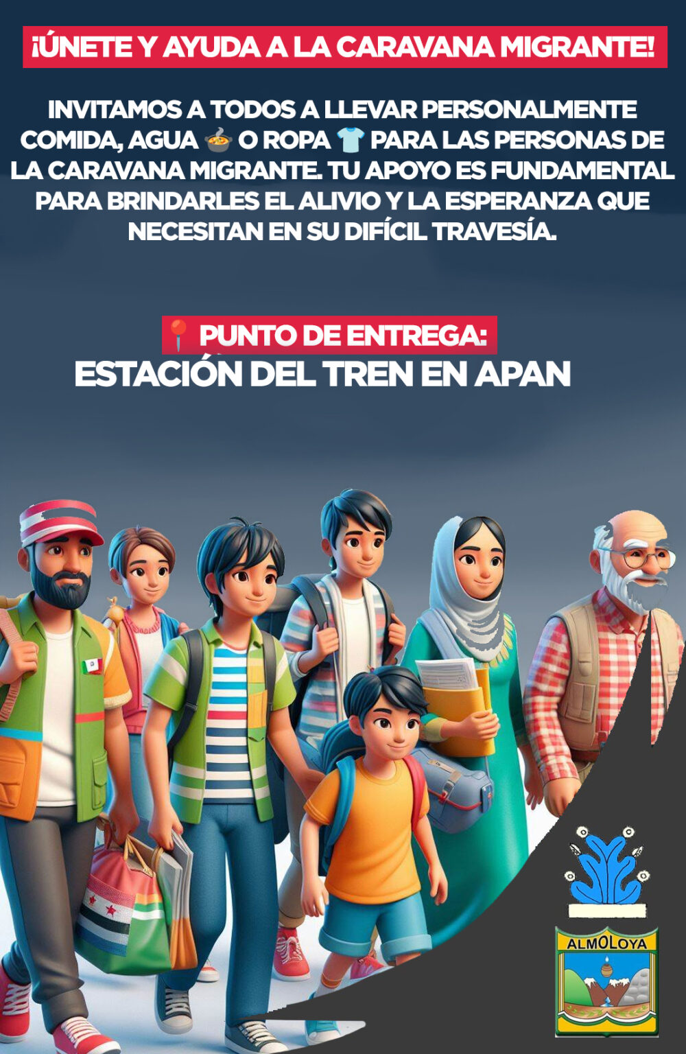 El mensaje difundido por la Presidencia Municipal de Almoloya es claro y directo: «¡Únete y ayuda a la Caravana Migrante! Invita a todos a llevar personalmente comida, agua o ropa para las personas de la Caravana Migrante. Tu apoyo es fundamental para brindarles el alivio y la esperanza que necesitan en su difícil travesía.» Punto de Entrega: Estación del Tren en Apan