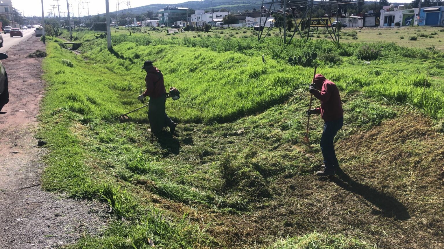 El equipo de servicios municipales realiza trabajos de jardinería y limpieza en avenida de Las Torres que une a Tepeapulco y Ciudad Sahagún.