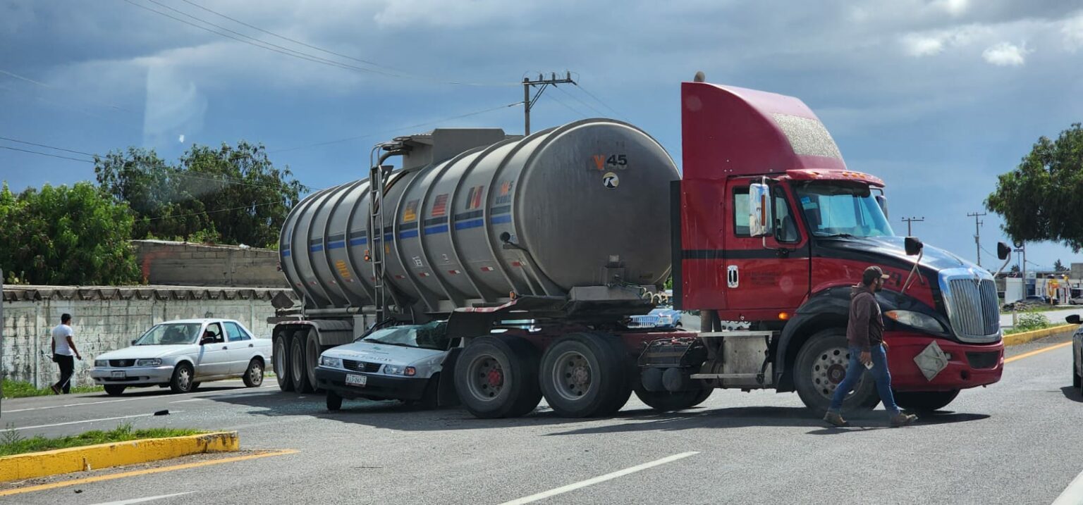 EPAZOYUCAN, Hgo. – Vive de milagro un funcionario municipal que por imprudencia chocó y metió su coche bajo una pipa, esta tarde, en la carretera Pachuca-Epazoyucan, a la altura del retorno de la localidad de Amaque.