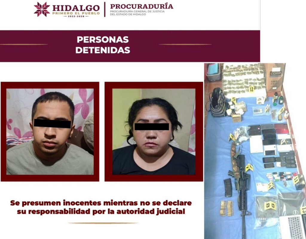 PACHUCA, Hgo. – La Agencia de Investigación Criminal de la Procuraduría General de Justicia del Estado de Hidalgo (PGJEH), ejecutó en Pachuca de Soto una orden de cateo por narcomenudeo, mediante la que detuvo a cuatro personas y aseguró alrededor de mil dosis de sustancia con características de la droga conocida como cristal, 45 dosis de polvo blanco con apariencia de cocaína, 80 dosis de hierba verde con aspecto de mariguana, así como un arma de fuego larga tipo fusil y 60 cartuchos útiles.