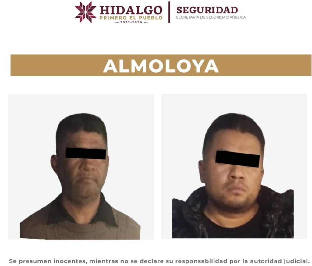 ALMOLOYA, Hgo. – Elementos de la Secretaría de Seguridad Pública de Hidalgo (SSPH) detuvieron a dos personas con drogas y un arma de fuego, en el municipio de Almoloya.