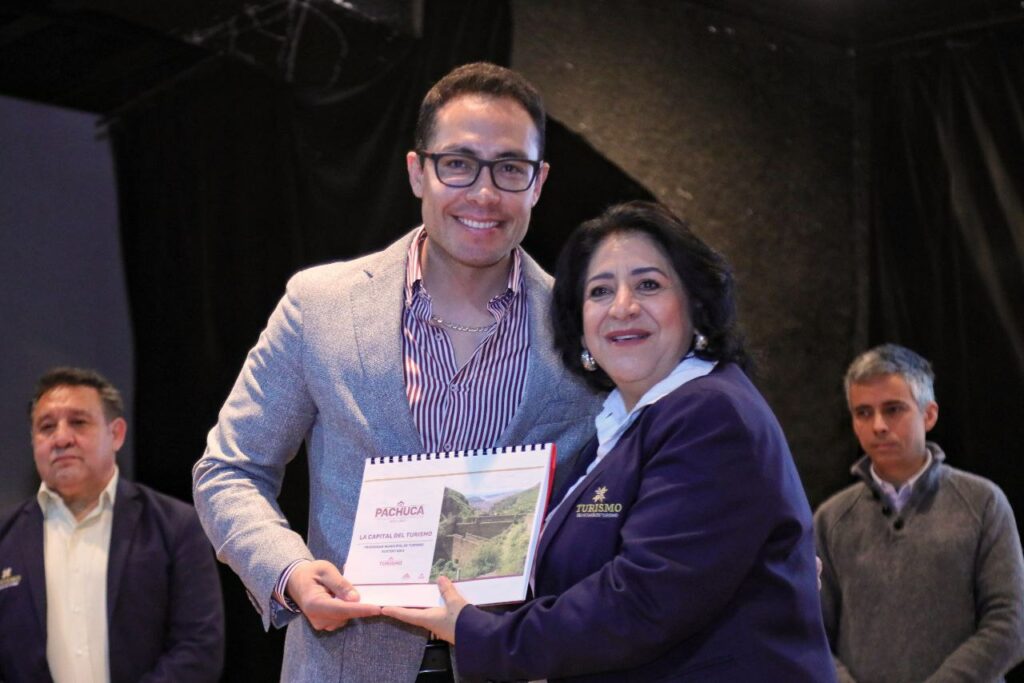 Elizabeth Quintanar recibió de manos del presidente, Jorge Reyes, el Plan Municipal de Turismo Sustentable y se congratuló de que Pachuca ya cuente con este documento, lo que habla del interés que se tiene en la materia.