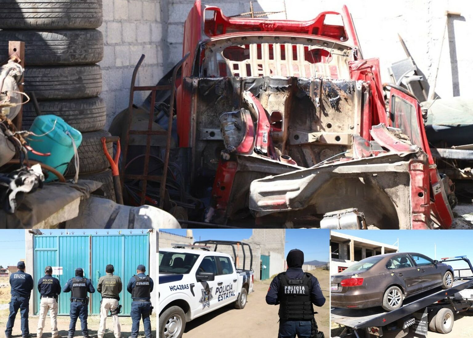 Resultado de este dispositivo, también fue decomisado un vehículo Volkswagen, color rojo, desvalijado y cortado, el cual contaba con reporte de robo vigente, así como diversas autopartes con números de serie alterados para evitar su identificación.
