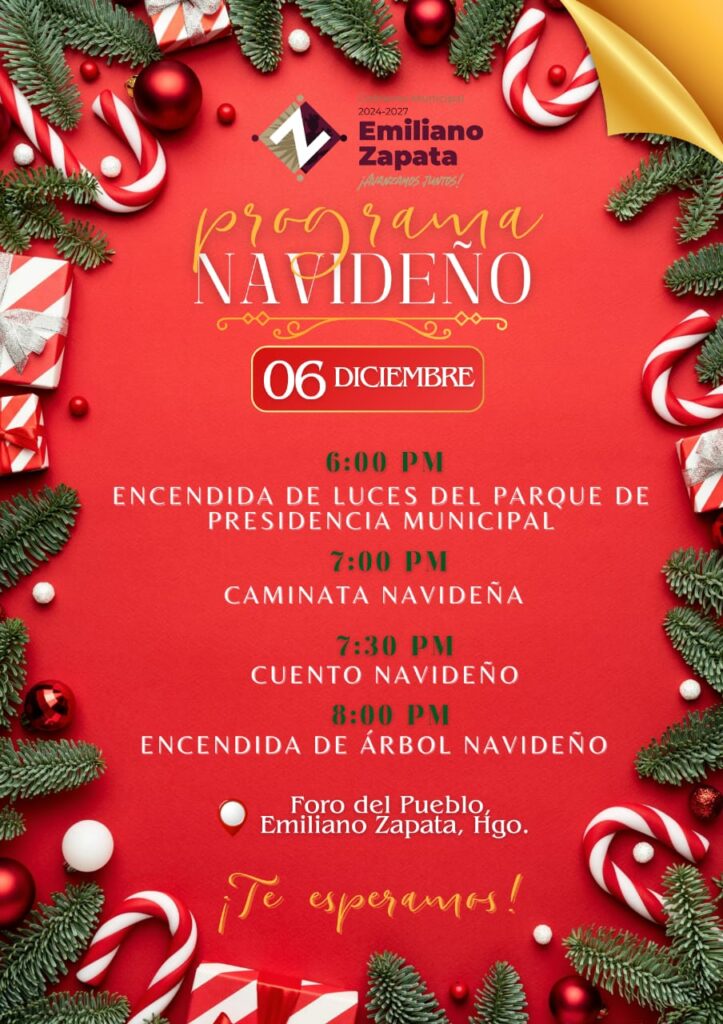 ¡Te esperamos este 6 de diciembre para celebrar juntos la alegría y el espíritu de la Navidad en Emiliano Zapata, Hidalgo! 🎄✨