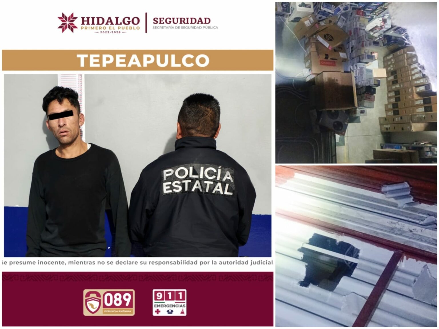 Las acciones de seguridad y vigilancia realizadas por la Secretaría de Seguridad Pública de Hidalgo (SSPH) permitieron el aseguramiento de un sujeto por su presunta participación en el robo a una tienda departamental en Tepeapulco.