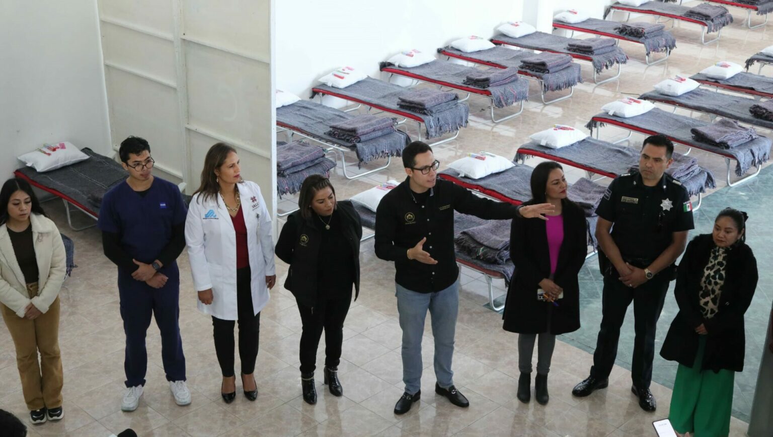 PACHUCA, Hgo. – Acompañado de Isabel Vite, secretaria de Desarrollo Humano y Social, el edil pachuqueño recorrió junto con representantes de los medios de comunicación las instalaciones en donde se albergará a las personas que lleguen, a partir del 13 de diciembre y hasta el 28 de febrero, en un horario de 18:30 a 8:00 horas con una merienda y desayuno.