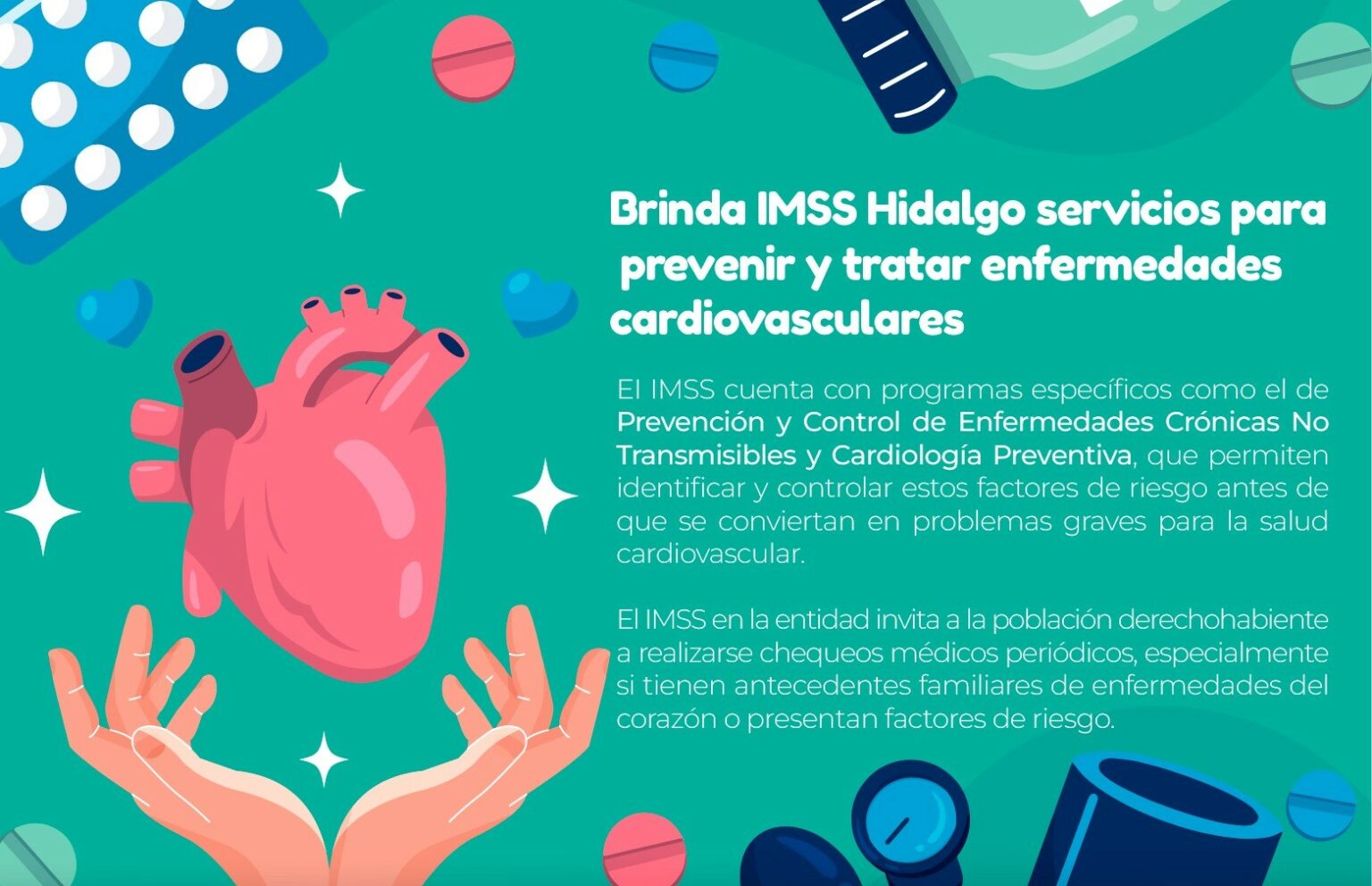 CIUDAD SAHGUN. – El Instituto Mexicano del Seguro Social (IMSS) en Hidalgo señala que las enfermedades cardiovasculares, son una de las principales causas de morbilidad y mortalidad en el país, por lo que el Instituto ofrece servicios médicos destinados a la prevención, diagnóstico y tratamiento con el objetivo de reducir los factores de riesgo asociados a estos trastornos.