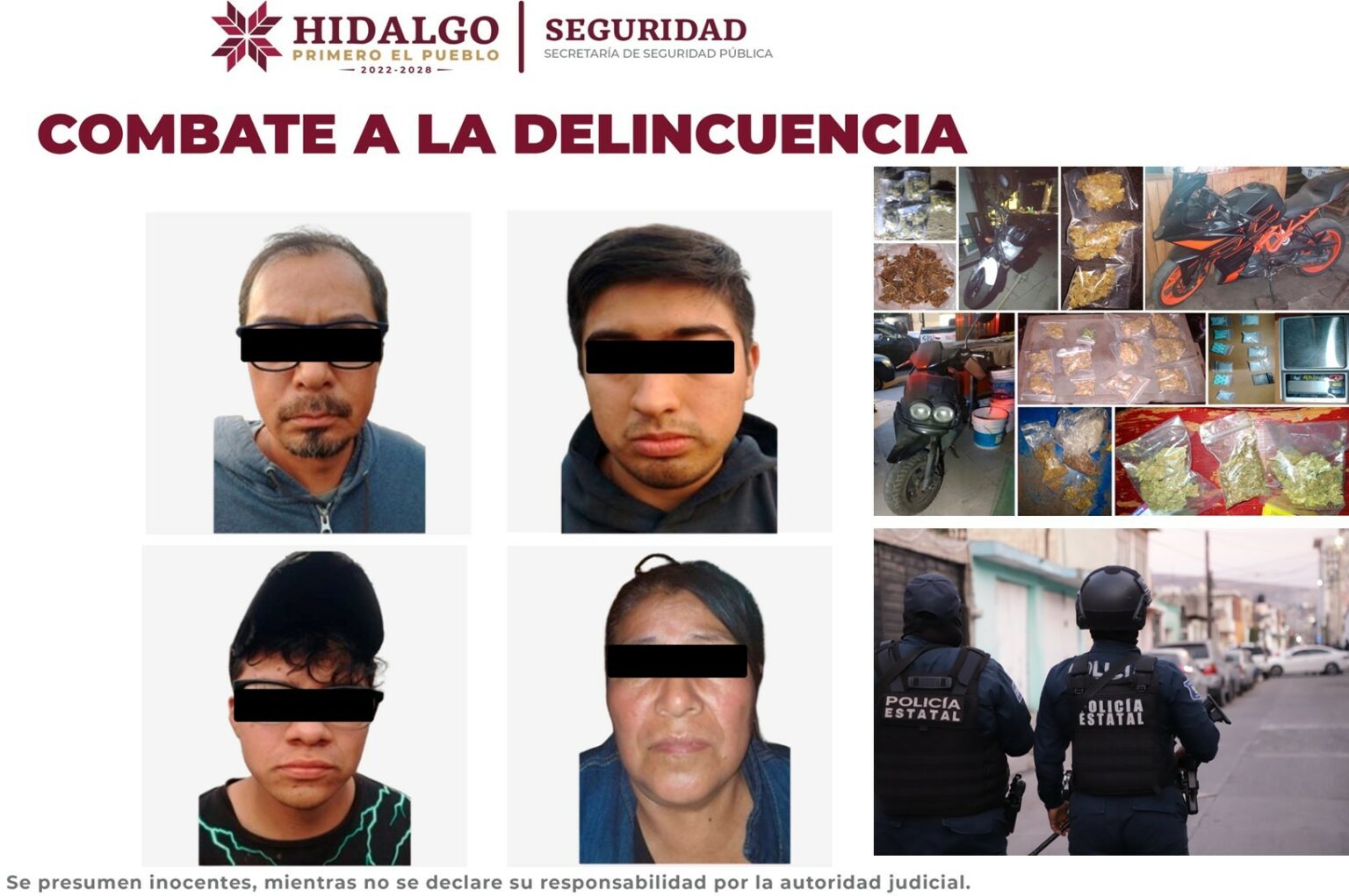 Estas acciones desarrolladas en coordinación interinstitucional con la Procuraduría General de Justicia de Hidalgo (PGJEH), se realizaron en seguimiento a labores de investigación que derivó de la ubicación domicilios señalados como presuntos puntos de narcomenudeo.
