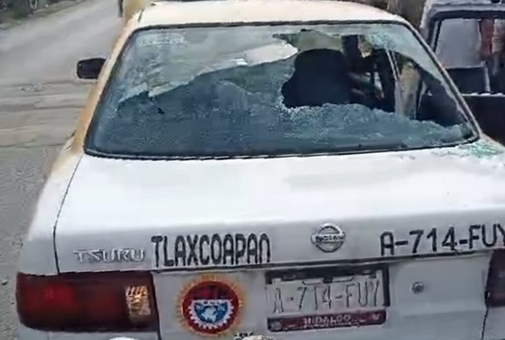 TLAXCOAPAN, Hgo. – Gran movilización policiaca origino macabro hallazgo al interior de un taxi localizado a la orilla de una carretera.