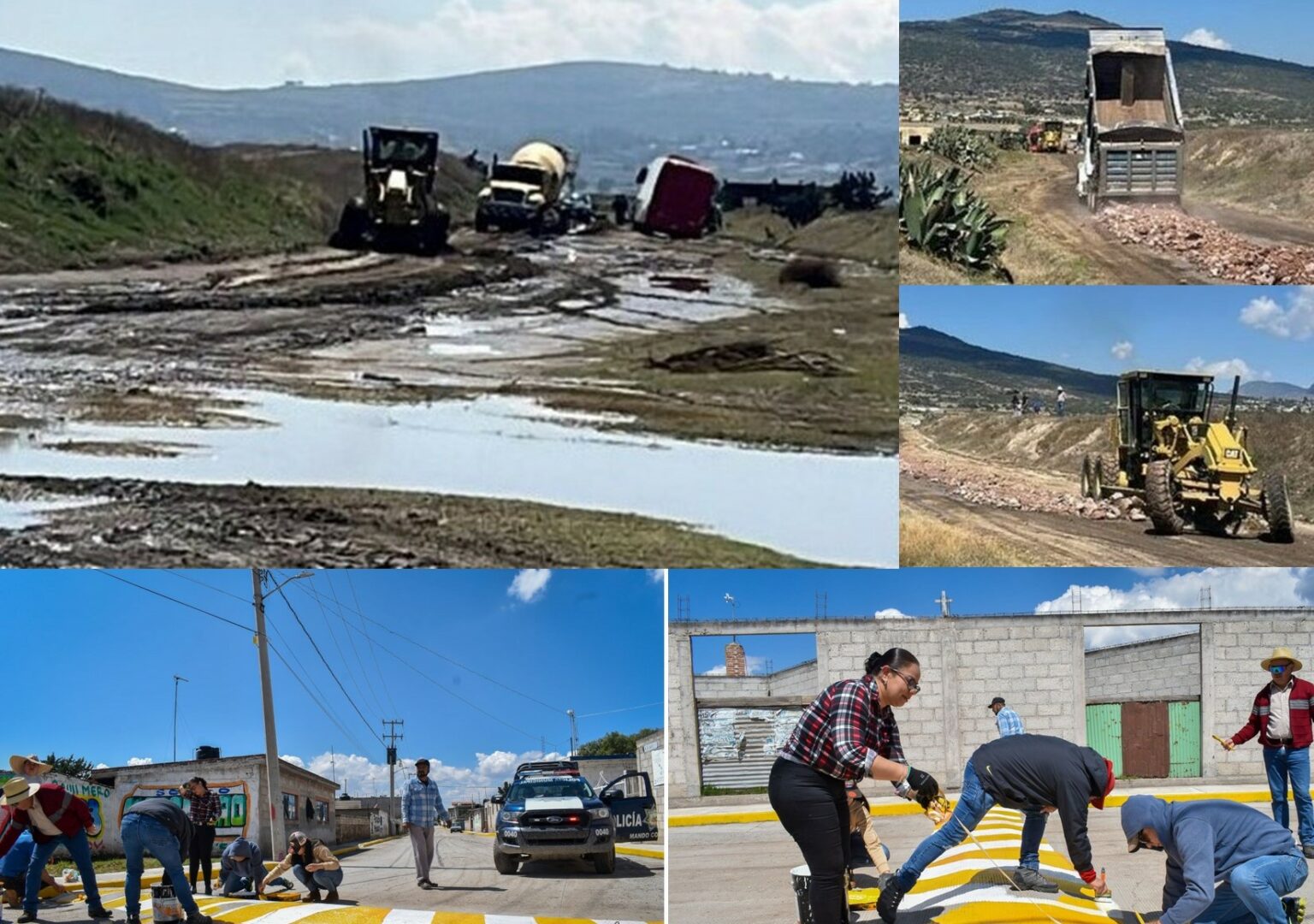 APAN, Hgo. – Los fuertes aguaceros que han azotado en los últimos días destrozaron el acceso a la localidad de La Laguna, ahora se metió maquinaria para hacer la restauración y en otras áreas cumplen labores de balizamiento.