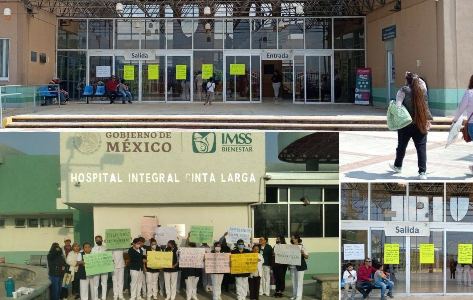 Personal médico y enfermería del Hospital General de del IMSS, ubicado en Cinta Larga, Hidalgo, la mañana de este viernes 28 de febrero, también se manifestaron para exteriorizar su impotencia por falta de medicamentos y material de curación para atender a los pacientes.