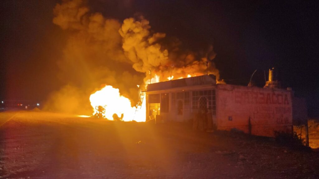 SINGUILUCAN, Hgo. – Se quemaron miles de litros de hidrocarburo, muy probablemente huachicol, esta madrugada, en un local ubicado a la orilla de la carretera México-Tuxpan, a la altura de Singuilucan.