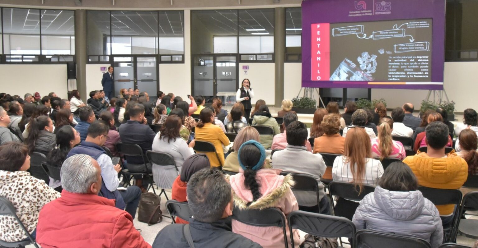 PACHUCA, Hgo. – Como parte de la campaña «Aléjate de las drogas. El fentanilo te mata», que impulsa el gobierno federal que dirige la presidenta Claudia Sheinbaum Pardo, la Universidad Politécnica Metropolitana de Hidalgo (UPMH) llevó a cabo una plática interactiva dirigida a padres de familia, con el objetivo de concientizar sobre los riesgos del consumo de drogas y sus repercusiones en la salud.