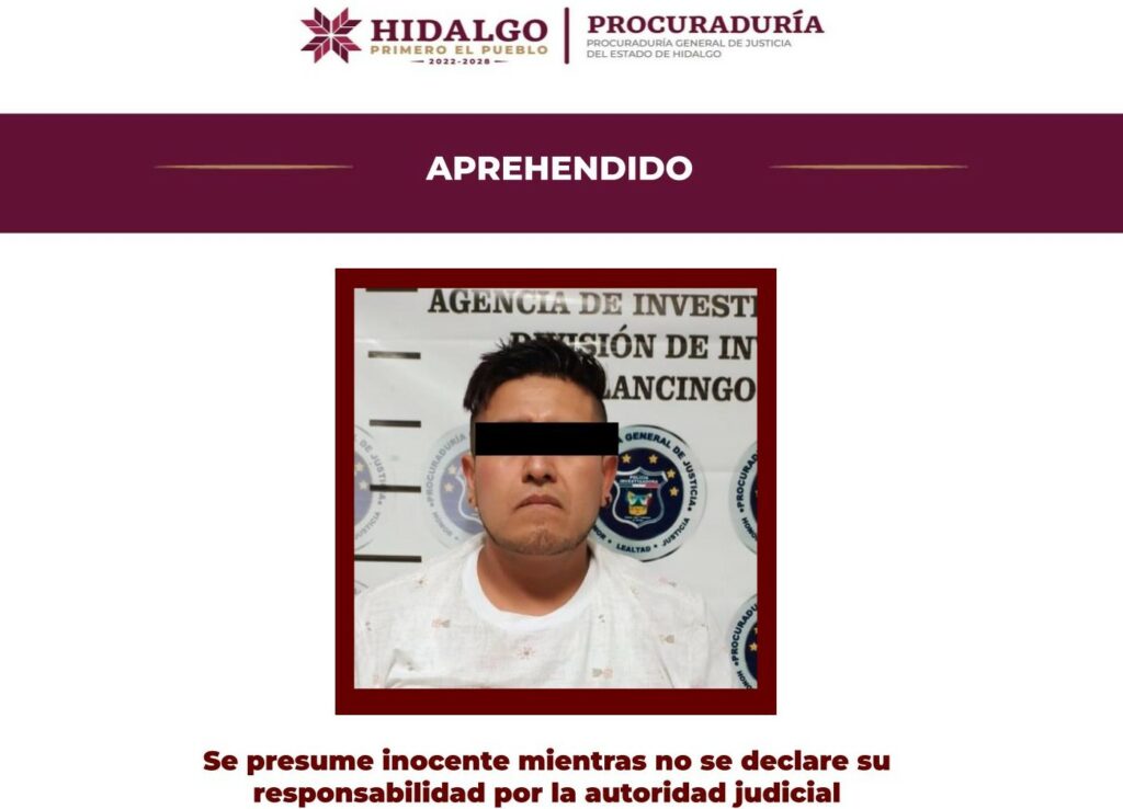 Mediante labores de inteligencia que llevaron a cabo elementos de la Agencia de Investigación Criminal de la PGJEH, se logró ubicar a N. C. C., a quien se le ejecutó la orden de aprehensión y posteriormente fue puesto a disposición de un juez de control, autoridad ante la que este domingo 13 de abril, agentes del Ministerio Público formularon imputación y solicitaron su vinculación a proceso. Sin embargo el imputado se acogió a la duplicidad del término constitucional de 144 horas y la continuación de la audiencia inicial fue programada para el próximo viernes 18 de abril de 2025.