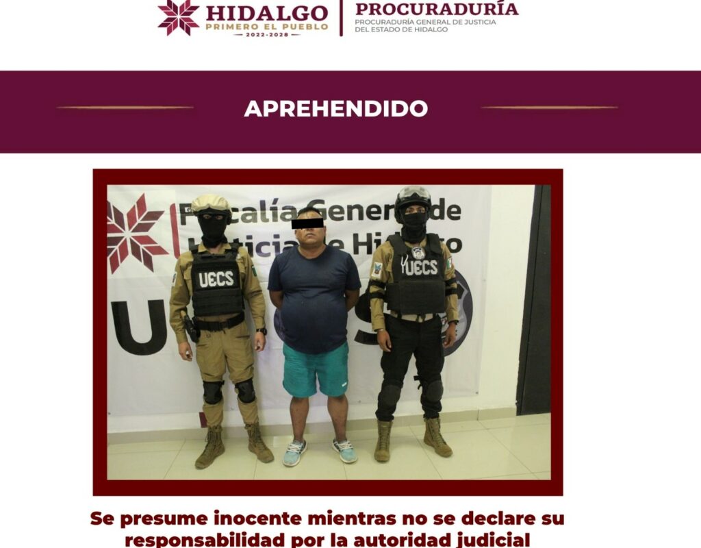 Una vez que la Fiscalía de Quintana Roo solicitó la colaboración, la UECS Hidalgo tuvo conocimiento de la ubicación del probable responsable y mediante labores tácticas fue aprehendido en la localidad de Michimaloya, municipio de Tula de Allende.