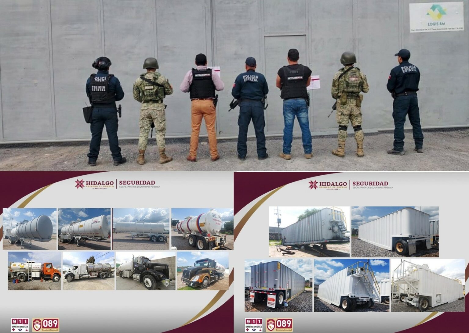 Durante el operativo se incautaron 9 tanques, 4 tractocamiones acoplados a pipas y 6 vehículos