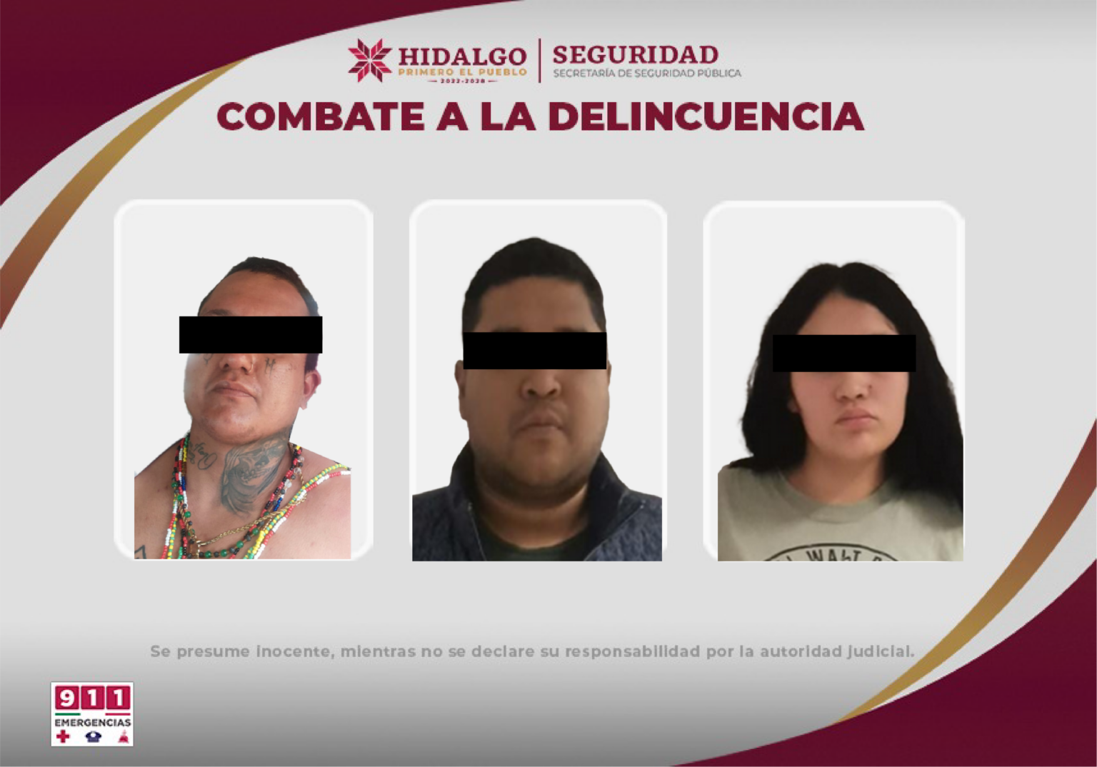 La Secretaría de Seguridad Pública de Hidalgo continuará impulsando acciones de combate frontal contra la delincuencia, por lo que se reitera el llamado a la ciudadanía para contribuir con estas acciones, realizando reportes mediante el 911 de Emergencias y/o al 089 de Denuncia Anónima.