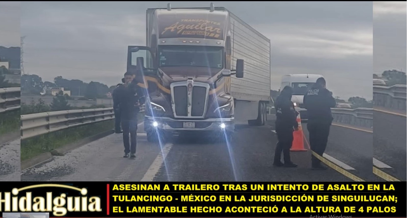 Singuilucan, Hgo., julio 29 de 2025 (Hidalguía).- «Es de los #400s de #Transportes #Aguilar; Lo acaban de balacear al Colega en el tramo de #Tulancingo a #México» así lo reportaron al filo de las 8:00 am., entre los grupos de información de traileros, al ver a su compañero abatido dentro de su unidad, tras un asalto frustrado en la carretera Tulancingo – México, a la altura de #4Palos.