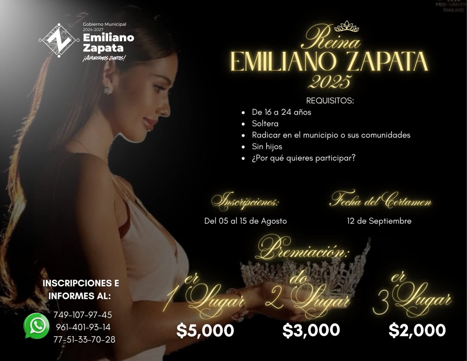 #ReinaEmilianoZapata2025 #OrgulloMunicipal #EmilianoZapata #ConvocatoriaAbierta #AvanzamosJuntos