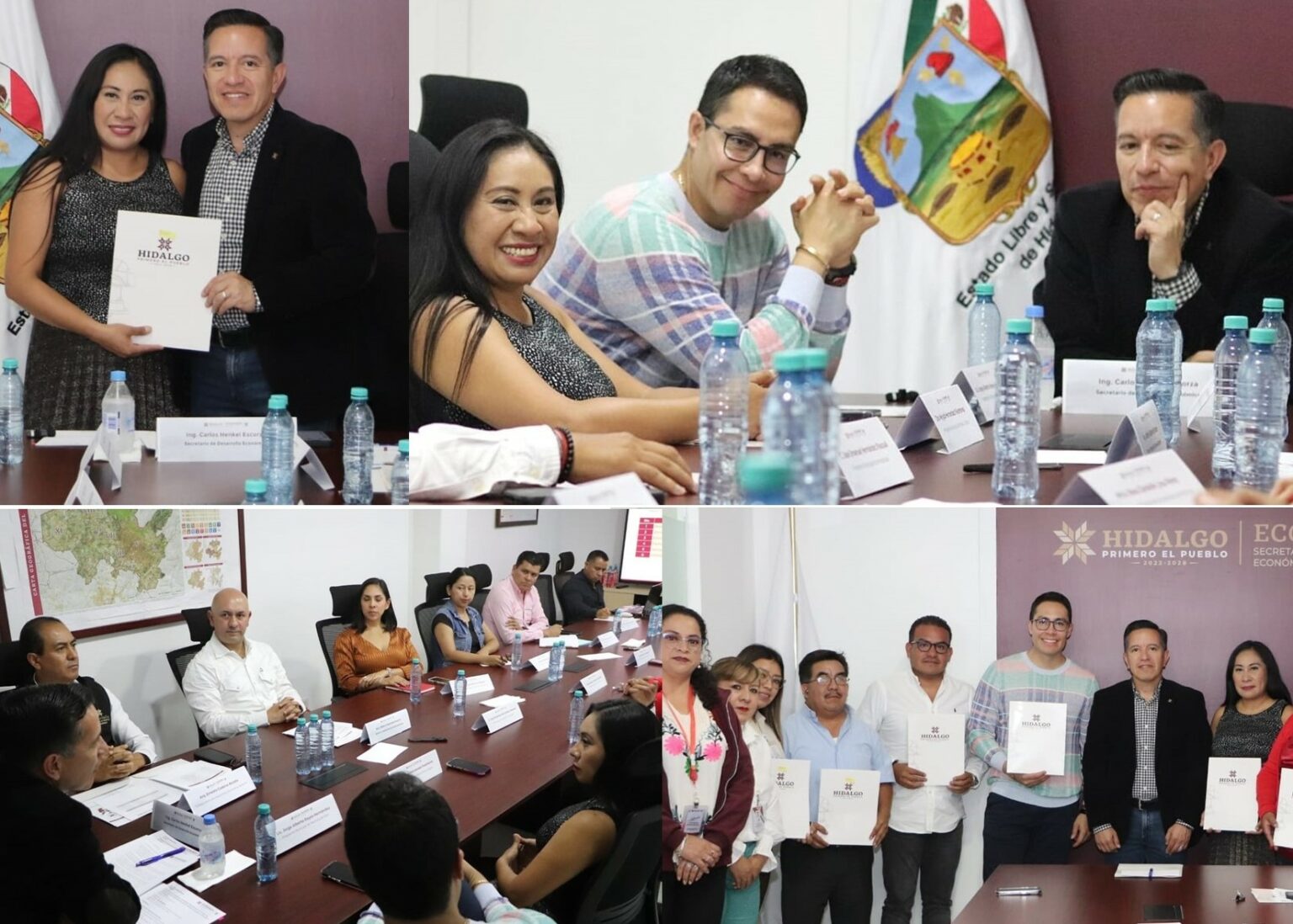 EMILIANO ZAPATA, Hgo. – La presidenta municipal de Emiliano Zapata, doctora Nelyda Hernández Palomares, junto a la directora de Desarrollo Económico Municipal, Cristina Hernández Martínez, este martes, acudió a las instalaciones de la Secretaría de Desarrollo Económico del Estado de Hidalgo, donde el secretario Carlos Henkel Escorza entregó los nombramientos a los municipios seleccionados para recibir apoyo del Programa Estatal para el Fortalecimiento de la Infraestructura de los Mercados Municipales 2025.