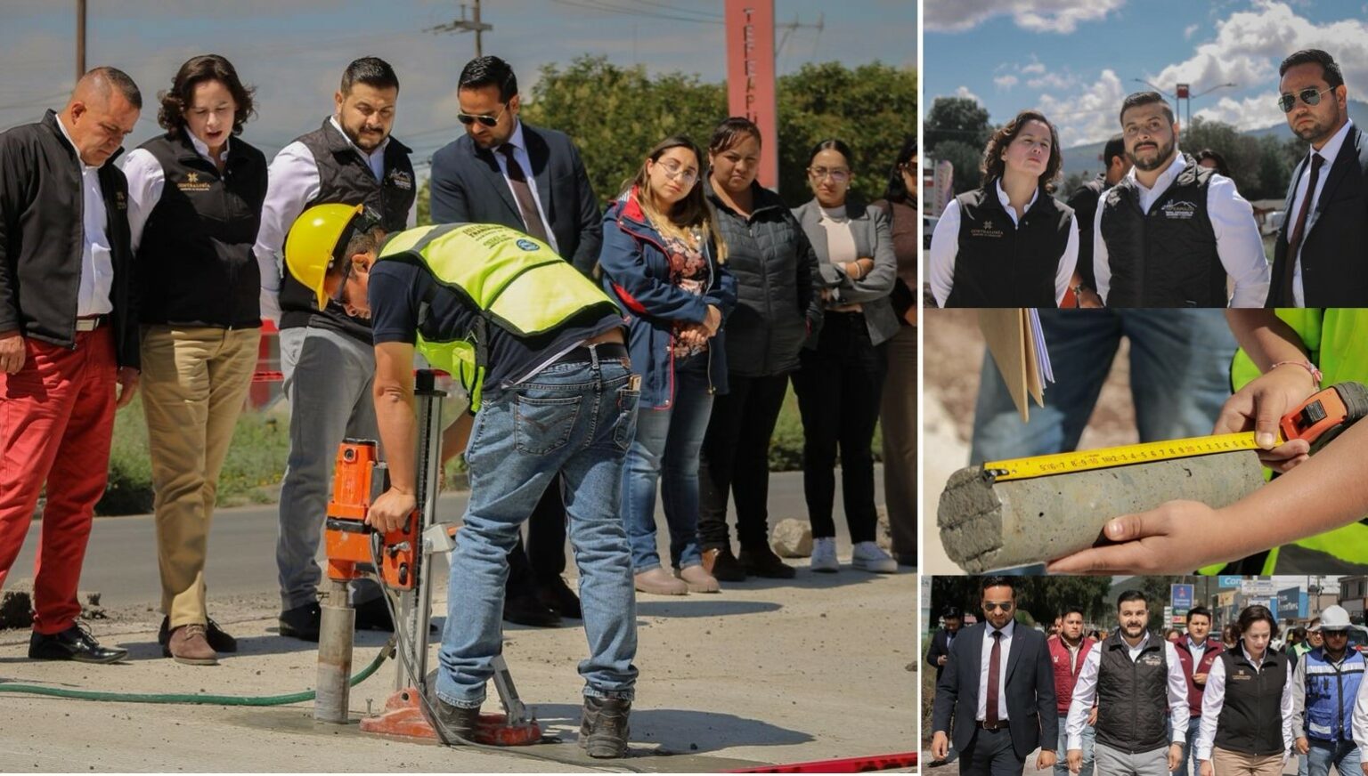 El Presidente Alfredo Quiroz encabezó la supervisión de las pruebas de espesor y resistencia en la pavimentación con concreto hidráulico de la Avenida Carlos Lazo, entronque a Tlanalapa. Dichas pruebas fueron realizadas por la Contraloría del Estado, en conjunto con la Contraloría Interna del Municipio, como parte del proceso de verificación técnica.
