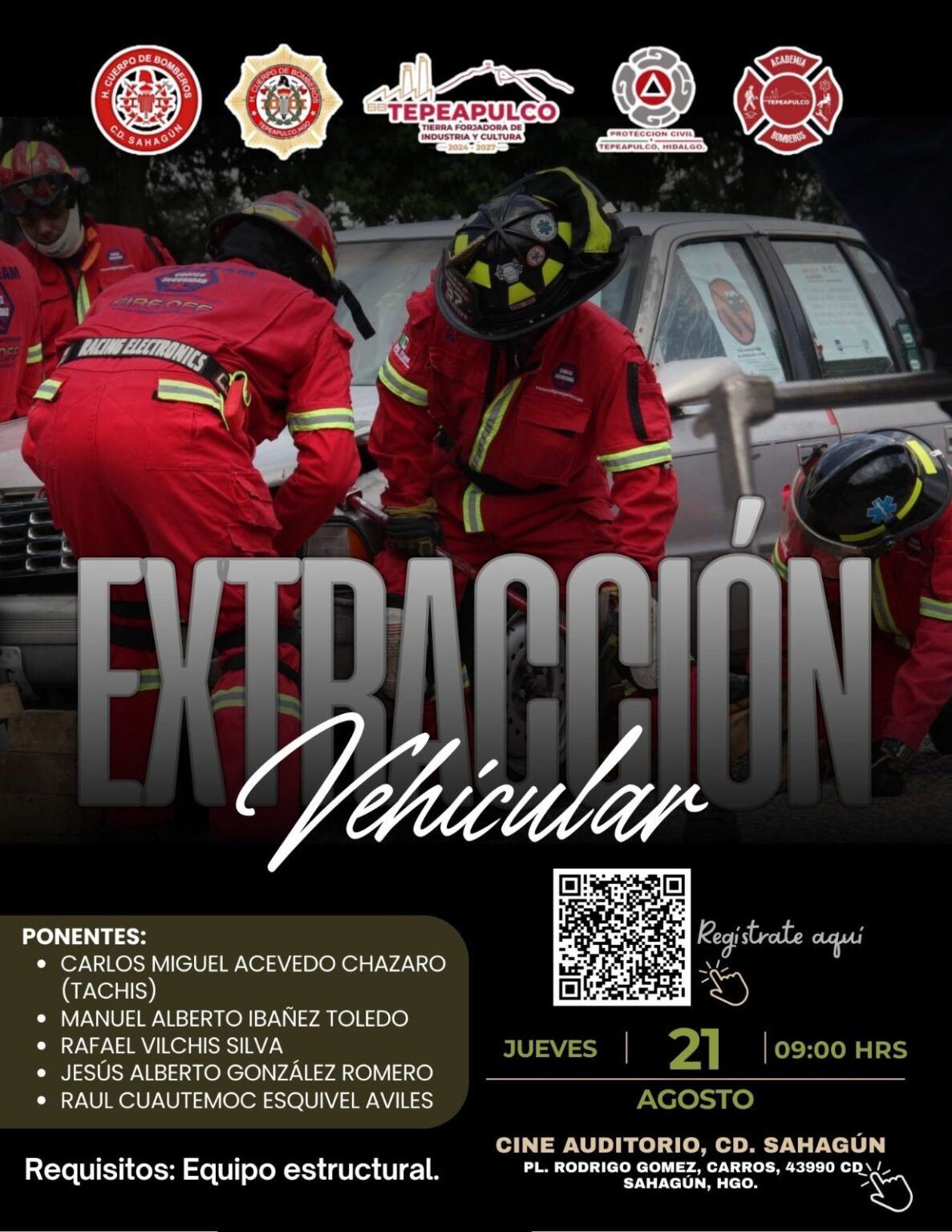 TEPEAPULCO, Hgo. – Las autoridades municipales de Tepeapulco invitan a participar en el curso “Extracción Vehicular”, prácticamente dirigido a los cuerpos de auxilio y población en general.