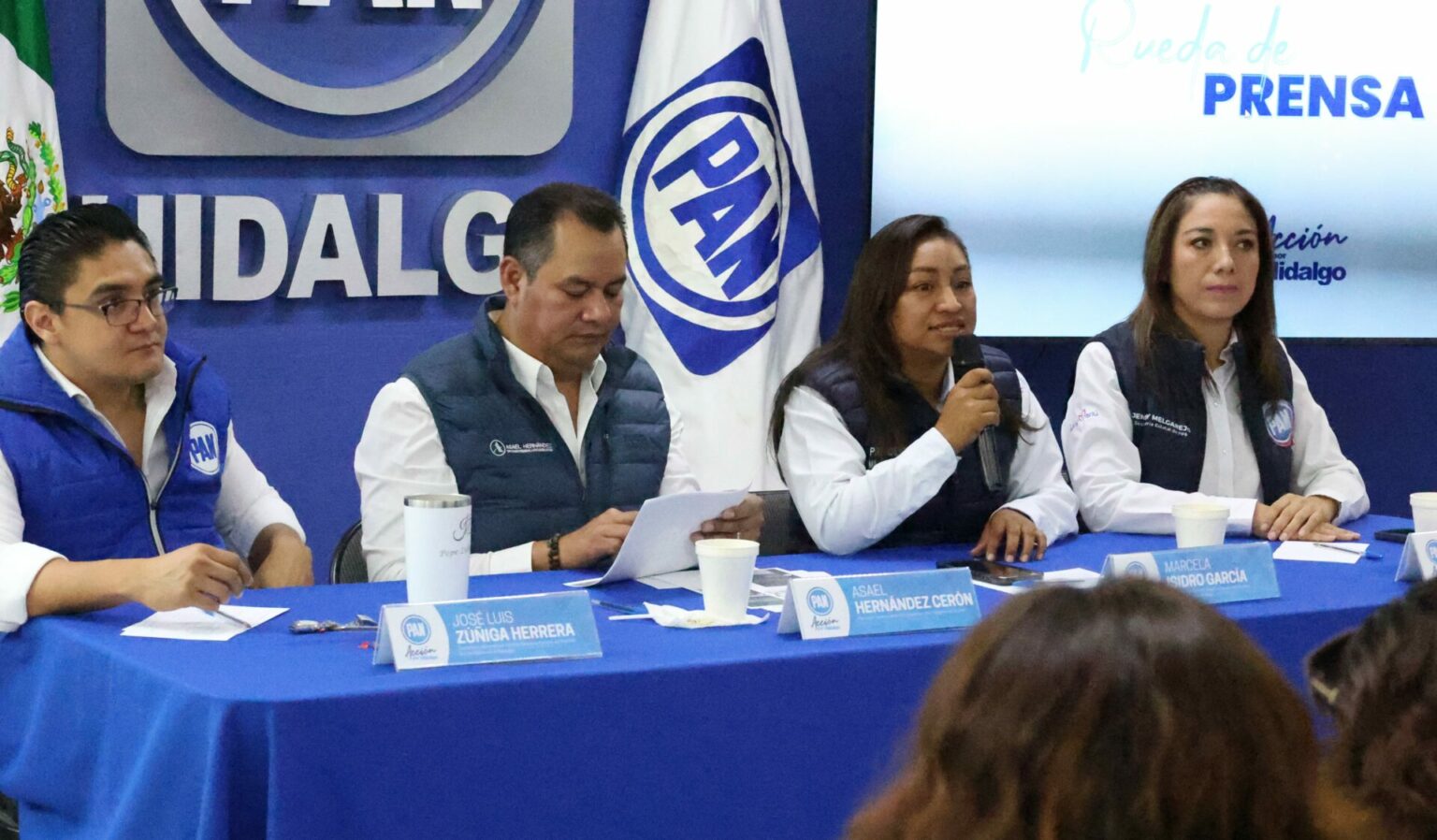 La conferencia fue encabezada por la presidenta del PAN Hidalgo, Marcela Isidro, quien dio la bienvenida a los medios de comunicación. Estuvo acompañada por el secretario general José Luis Zúñiga, el diputado federal Asael Hernández Cerón, y la síndica del municipio de Pachuca, Jenny Marlú.