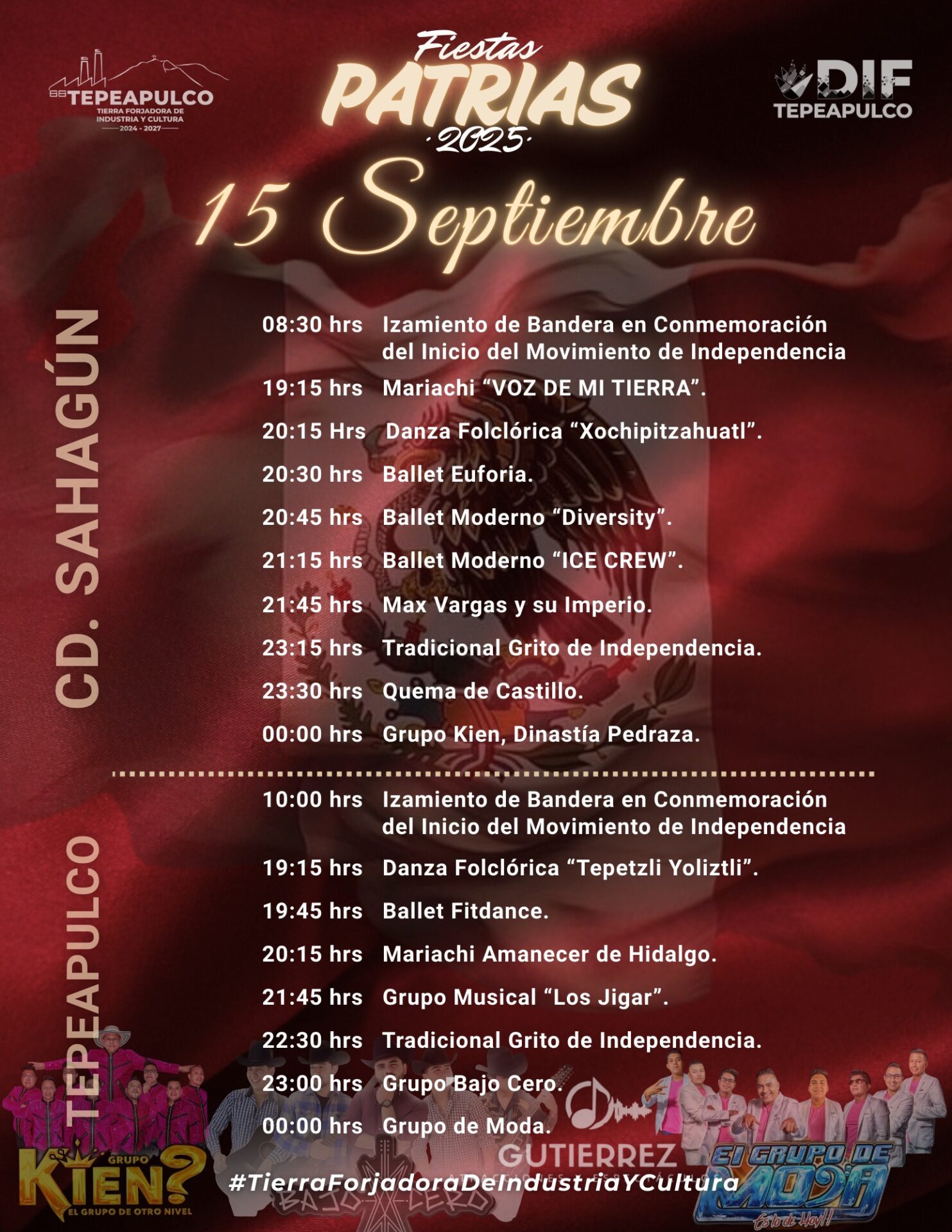 TEPEAPULCO, Hgo. – Todo está listos para disfrutar un excelente programa de fiestas patrias en Tepeapulco y Ciudad Sahagún.