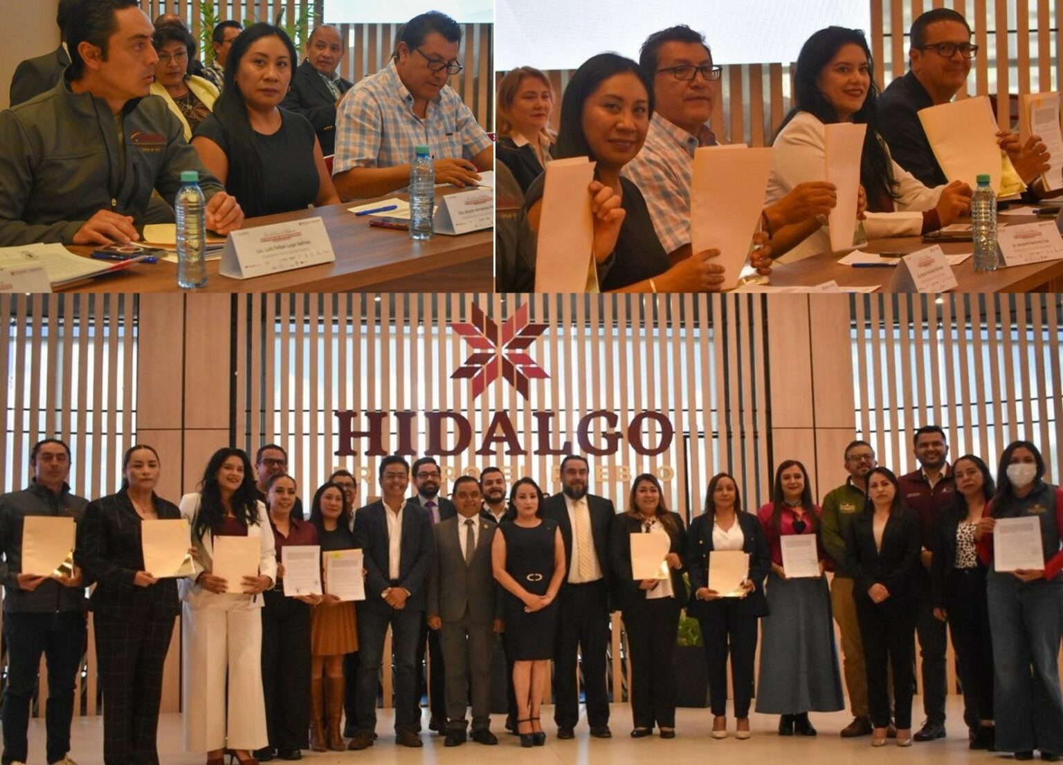 Legisladores del Congreso de Hidalgo junto con representantes de la Asociación de Alcaldes de Hidalgo atestiguaron el evento realizado para impulsar la eficiencia administrativa, la honestidad y transparencia en el manejo de los recursos económicos.