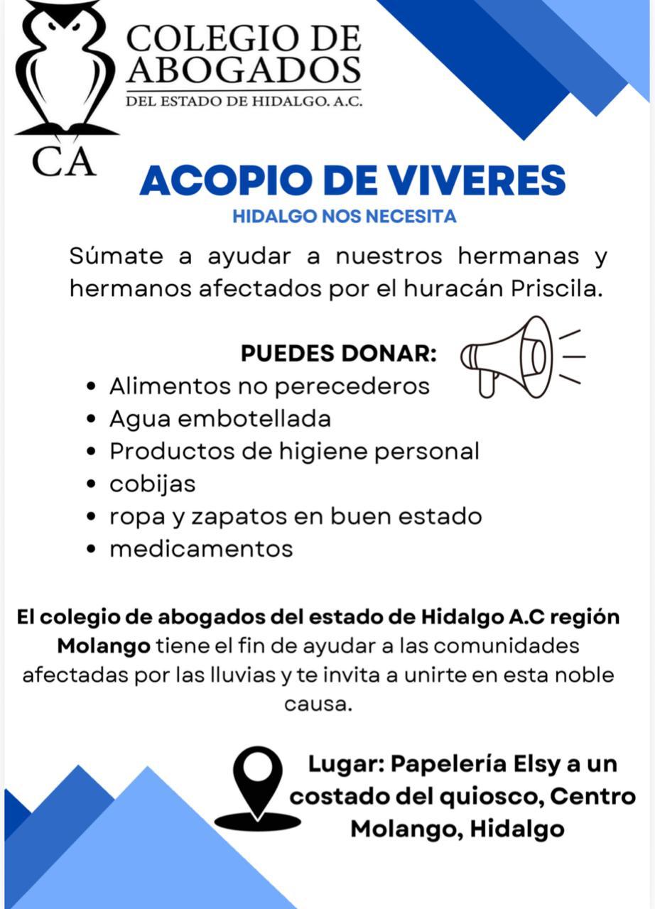 Donación de víveres, vestimenta y calzado para repartirlo entre los más necesitados de zonas afectadas por las lluvias.