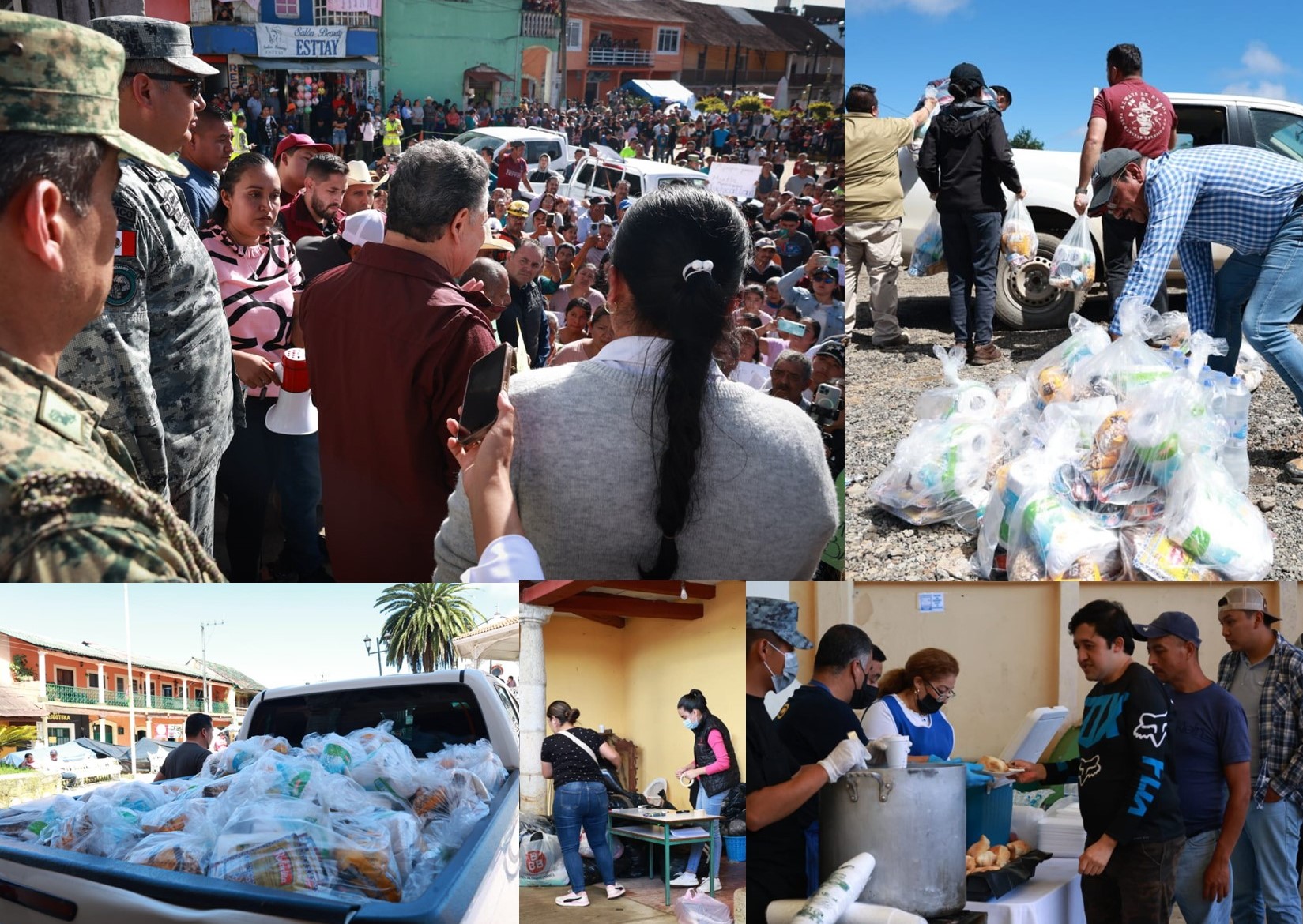“La presidenta me encargó comunicarles a ustedes que no están solos, que no están solas, que el gobierno federal, que el gobierno estatal, que el gobierno municipal estamos cercanos. Ahorita lo fundamental es atender la emergencia […] está la maquinaria limpiando los caminos, haciendo llegar las brigadas de rescate y haciendo llegar víveres y medicamentos. Quiero transmitirles ese compromiso y ese esfuerzo”, expresó Menchaca Salazar.