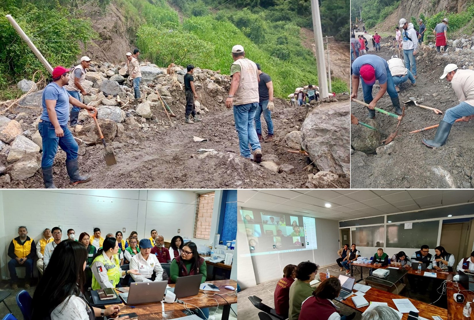 El Programa de Vectores también se sumó a las labores de apoyo en la localidad de Calintla, municipio de San Bartolo Tutotepec, colaborando en la remoción de escombros y apertura de caminos que permiten el acceso a comunidades aisladas.