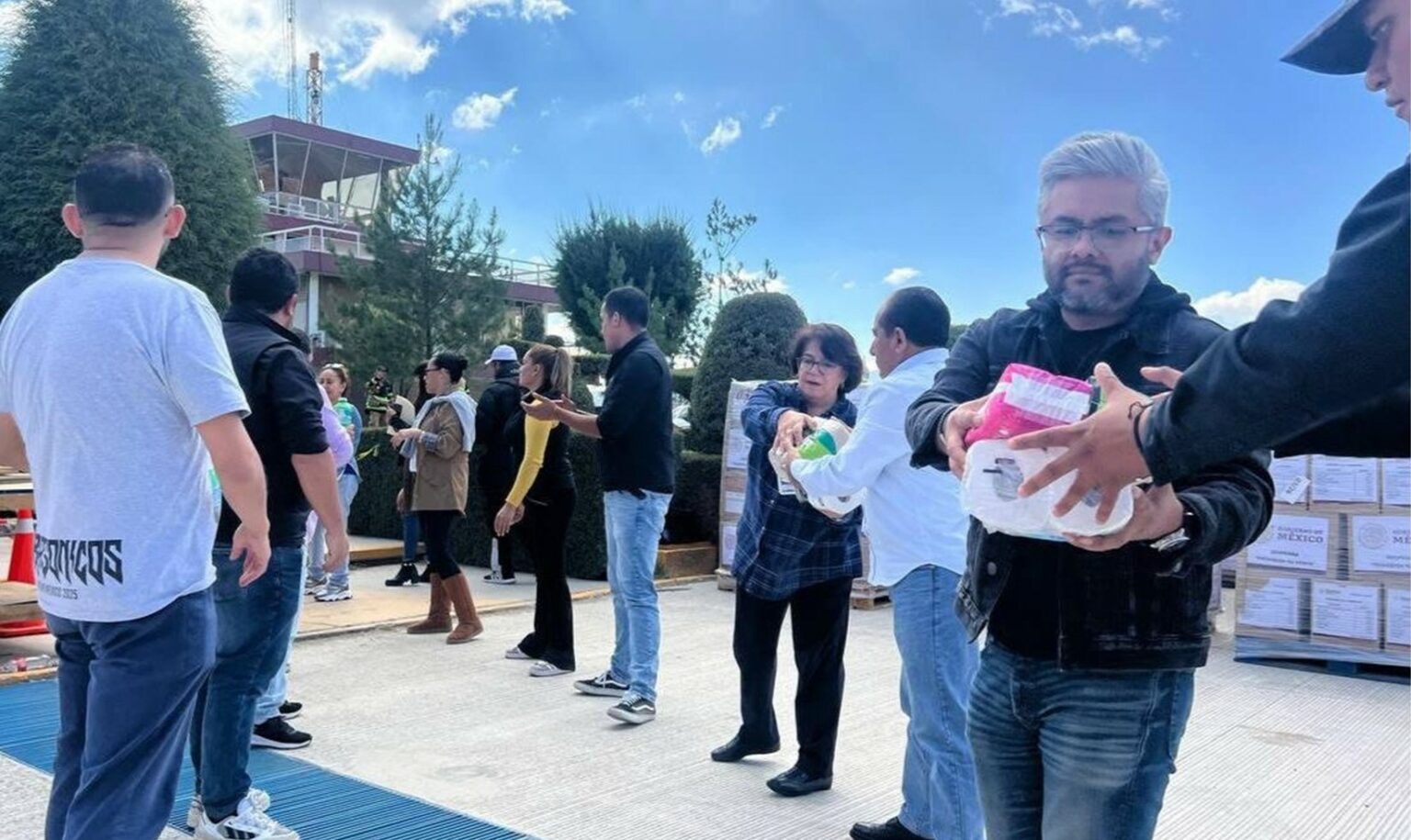 De forma solidaria, el personal de Caasim y personas usuarias, entregaron 3 mil 664 productos recolectados al Sistema DIF Hidalgo, en el aeropuerto Juan Guillermo Villasana, que funciona como base aérea y puente humanitario.