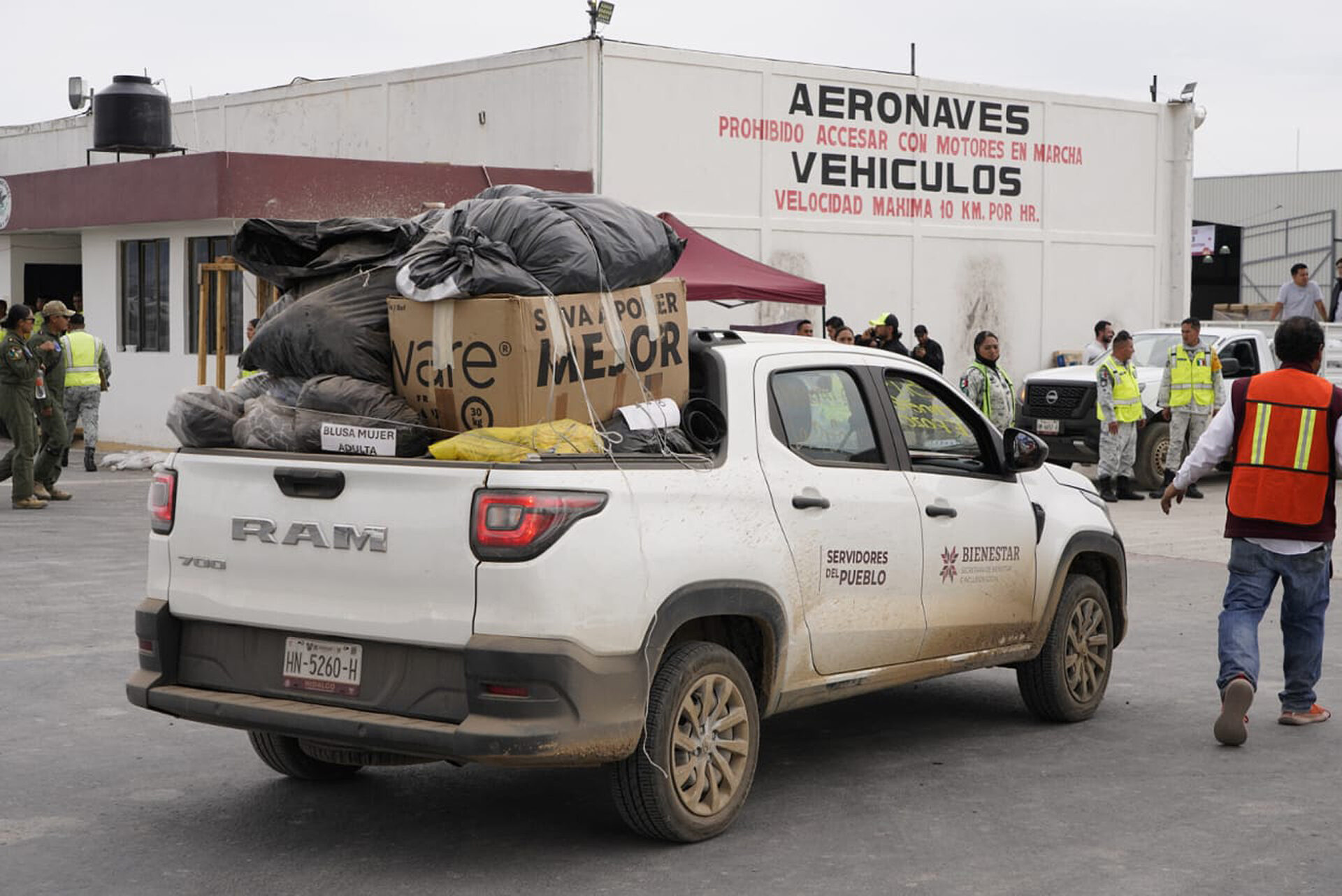 El operativo de entrega partió de las 12 oficinas regionales hasta el Aeropuerto Juan Guillermo Villasana de Pachuca, en donde las y los servidores del pueblo fueron los encargados de descargar las donaciones hechas por la sociedad hidalguense en solidaridad con las personas damnificadas por el Huracán Priscilla.