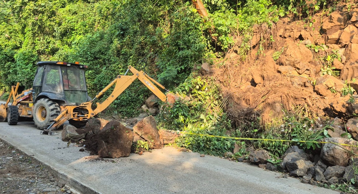 de 100 metros cúbicos de derrumbes en la carretera estatal Orizatlán –