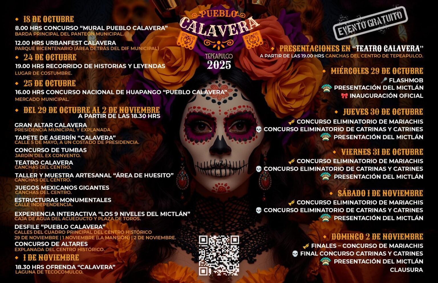 TEP’EAPULCO, Hgo. – Esta en marcha la segunda edición del programa “Pueblo Calavera Tepeapulco 2025”, con actividades que acaparan la atención de propios y extraños que se convierte en tradición gracias a la difusión de cultura, leyendas y tradiciones muy mexicanas.