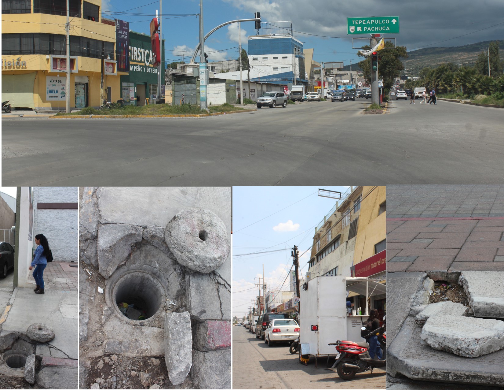 Son abundantes las coladeras sin tapadera que representan un peligro para los peatones, los pavimentos despedazados que requieren fácil reparación y ahora hasta un anuncio en lona destruido que cubre el semáforo localizado en el entronque de la avenida Carlos Lazo y carretera corta federal Ciudad Sahagún-Pachuca.