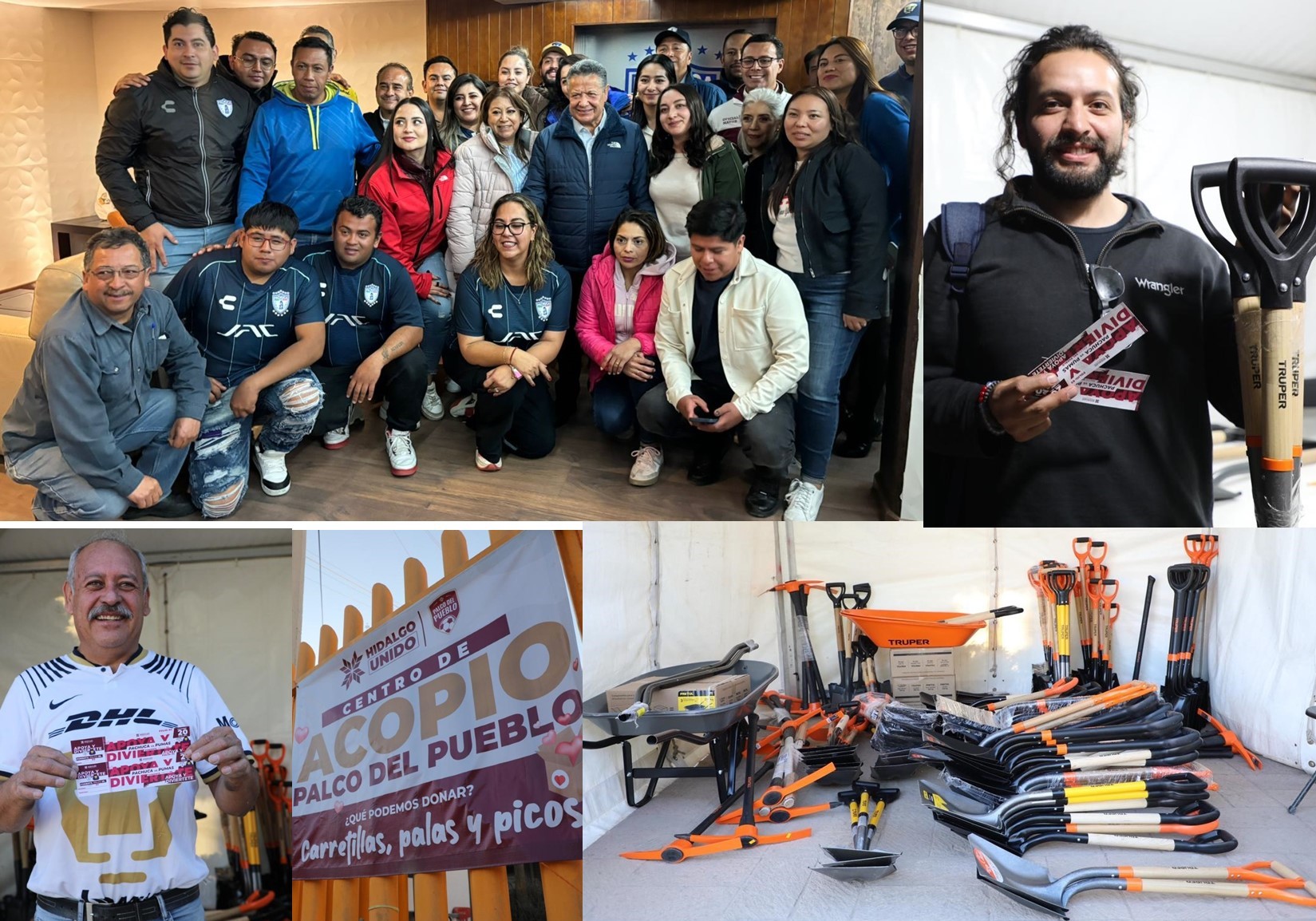 La noche de este jueves, personas solidarias con las comunidades afectadas por las lluvias en Hidalgo, pudieron acceder al Palco del Pueblo para disfrutar del partido Pachuca – Pumas. Lo anterior como resultado de su donativo ante la convocatoria de apoyo para las zonas siniestradas. Las 138 palas, tres carretillas y 30 picos ayudarán a fortalecer las labores de apoyo en aquellas localidades; el gobierno de Julio Menchaca agradece su solidaridad.