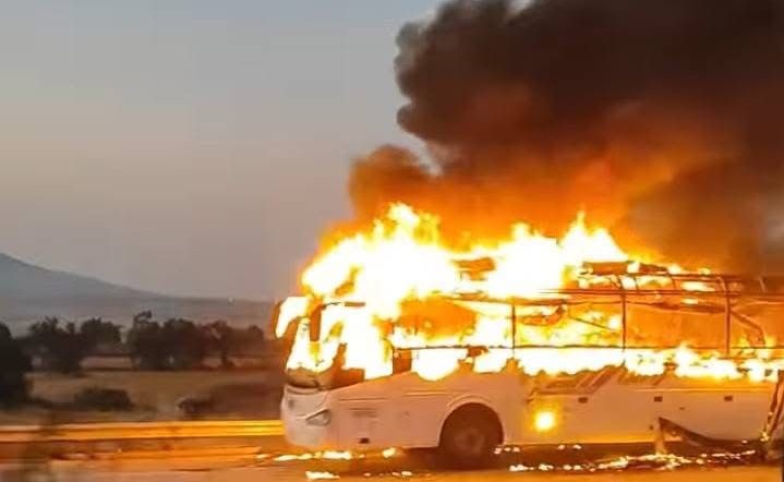 Al amanecer de este viernes 21 de noviembre, se registró el incendio de un autobús de pasajeros sobre la autopista Arco Norte, cerca de la caseta de cobro de Pachuca. Afortunadamente hubo tiempo para evacuar el vehículo y no se reportan lesionados.
