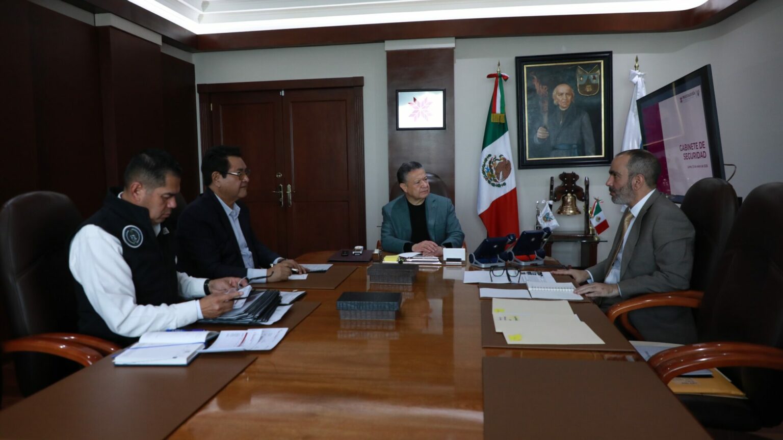 En reunión semanal, se informaron los pormenores del arresto de las seis personas originarias de los estados de Campeche y Jalisco, así como del aseguramiento de seis armas largas y dos cortas, chalecos tácticos, cargadores abastecidos y dos vehículos.