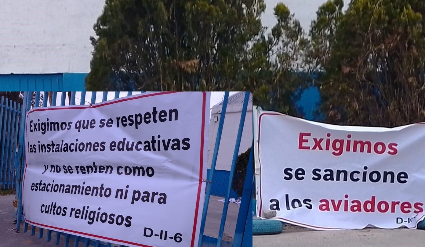 El periodista Roylan Portes, la mañana de hoy, hizo públicas fotografías de los accesos a la Secundaria General Dos de Pachuca, ahí aparecen lonas donde se denuncia la existencia de aviadores en la nómina de la escuela, exigen cuentas claras por la renta del plantel como estacionamiento, además de supuestos señalamientos acoso laboral.