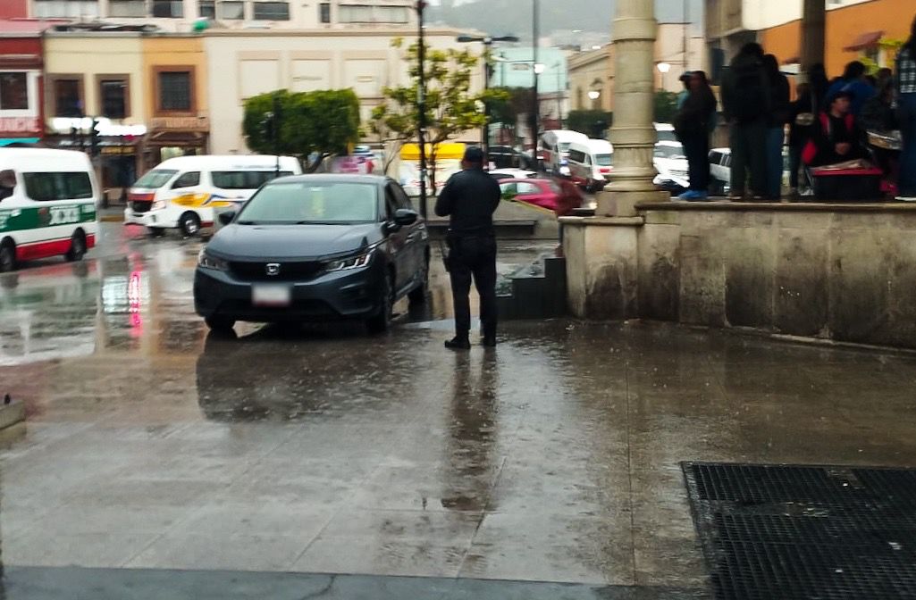Pachuca de Soto, Hgo. – La Secretaría de Seguridad Pública, Tránsito y Vialidad de Pachuca atendió el reporte de un vehículo estacionado sobre la banqueta, junto al kiosco de Plaza Independencia, acción que impedía el libre tránsito peatonal y representaba un riesgo para la seguridad de las personas que circulan por la zona.
